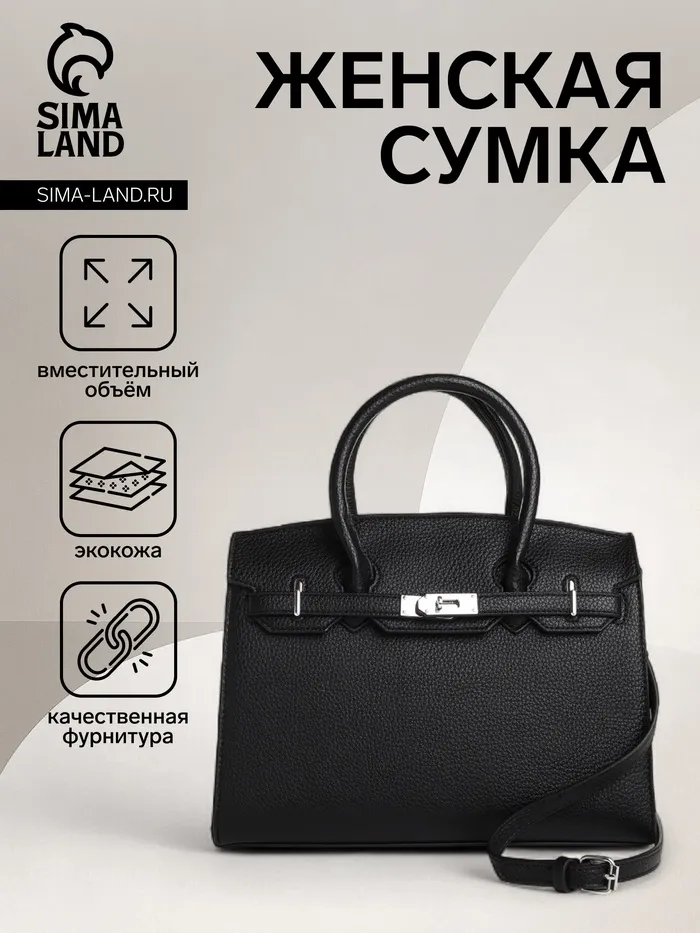 Сумка женская тоут на клапане, 30×10×23 см, чёрный — Характеристики