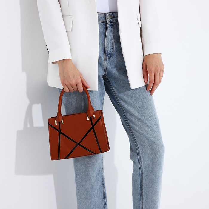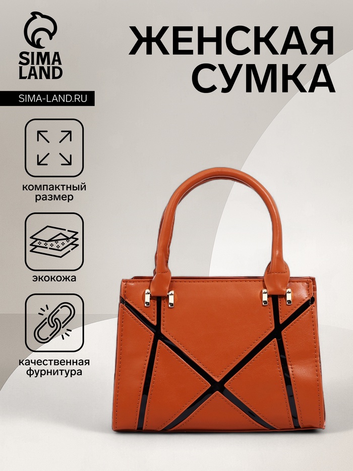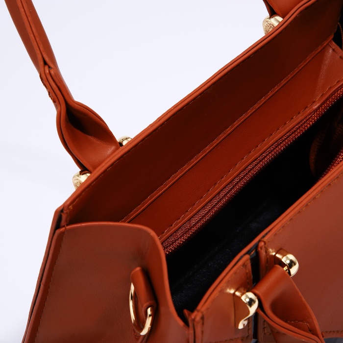 Сумка женская тоут на молнии, 22×8×16 см, рыжая — Характеристики
