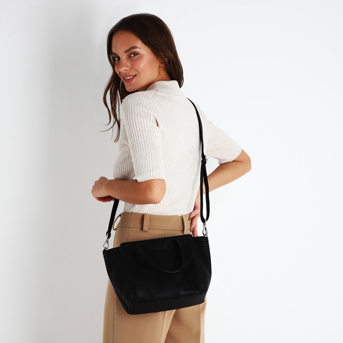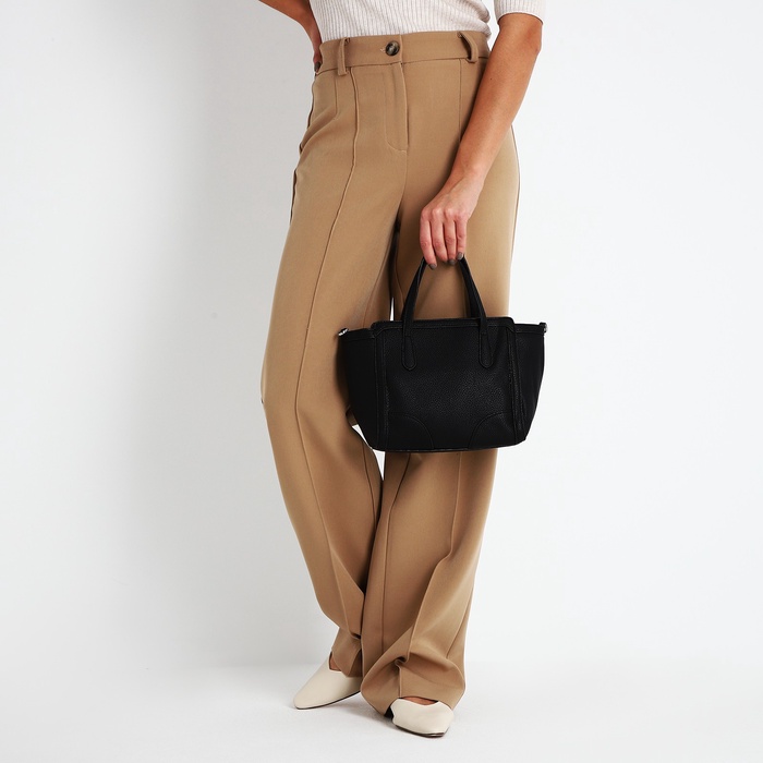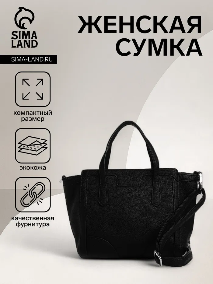 Сумка женская тоут на молнии, 22×8×19 см, чёрная — Характеристики