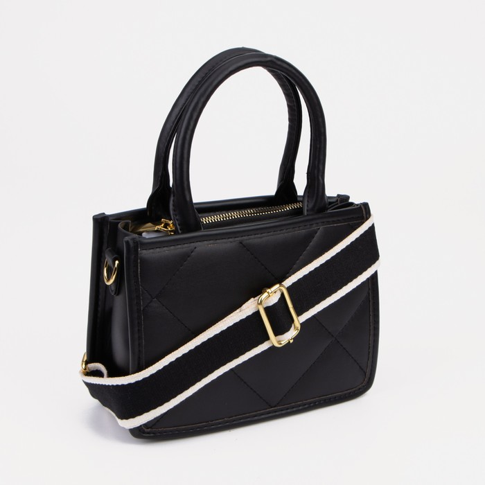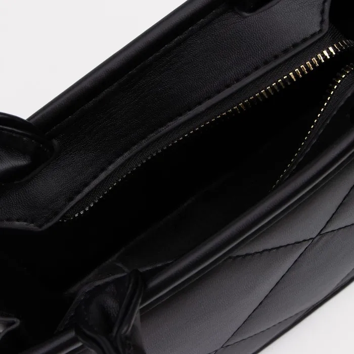 Сумка женская тоут на молнии, 22×9×16 см, однотонная, со стёжкой, чёрная — Характеристики