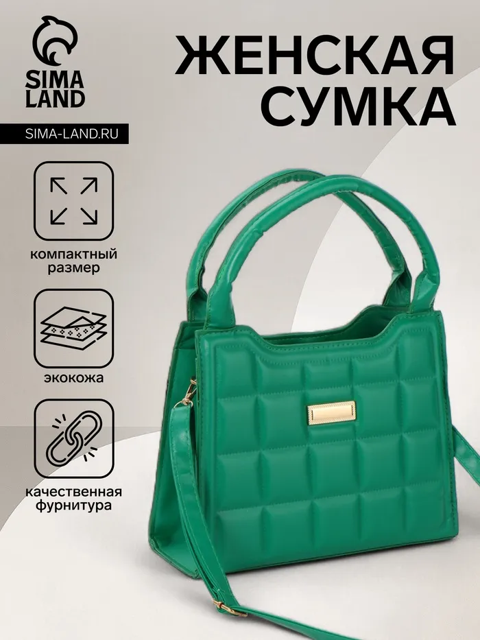 Сумка женская тоут на молнии, 25×10.5×19.5 см, зелёный — Характеристики