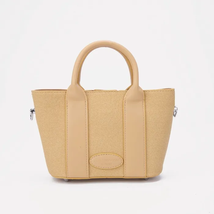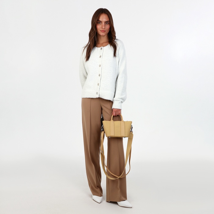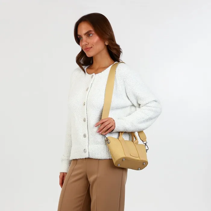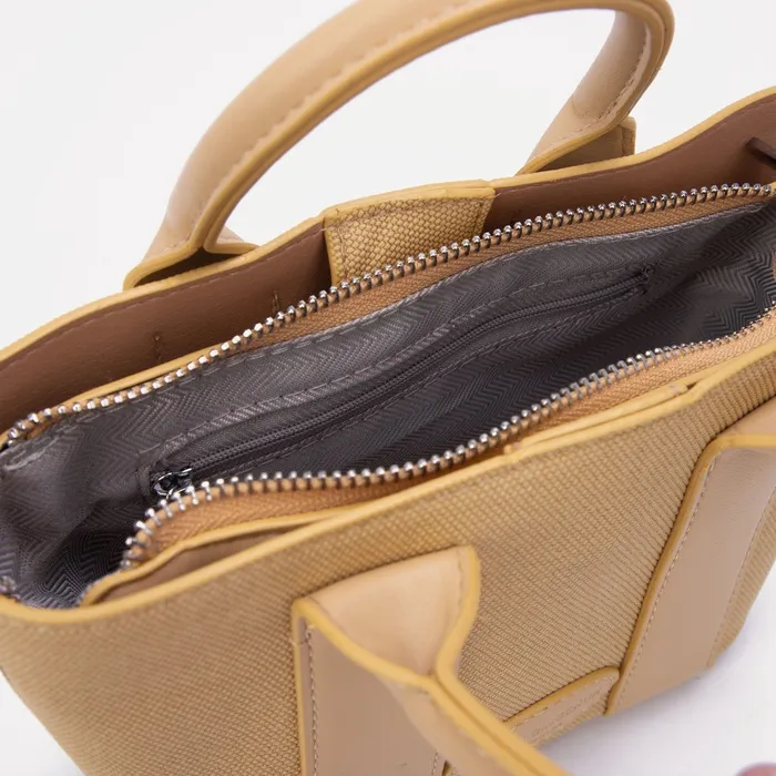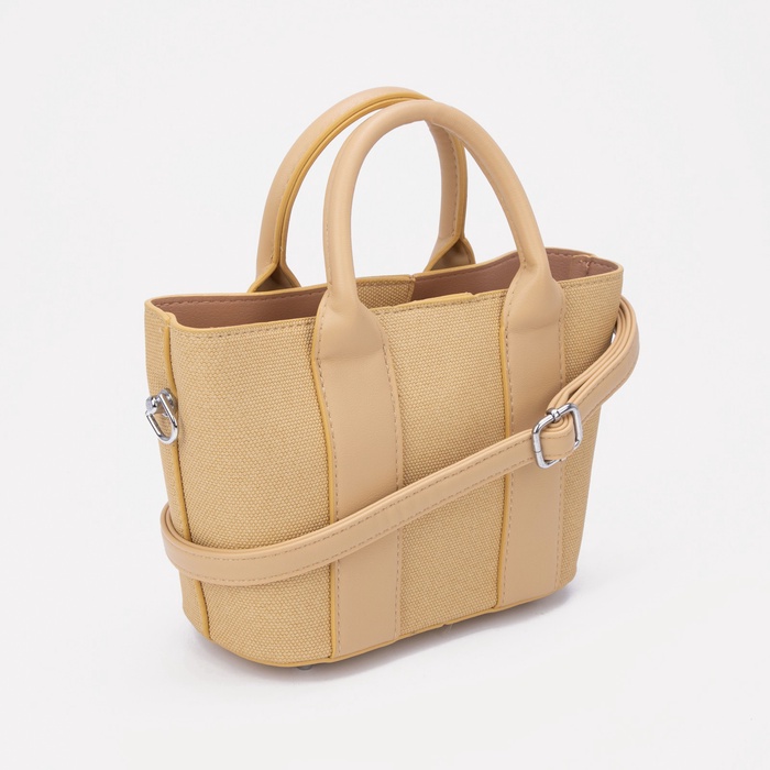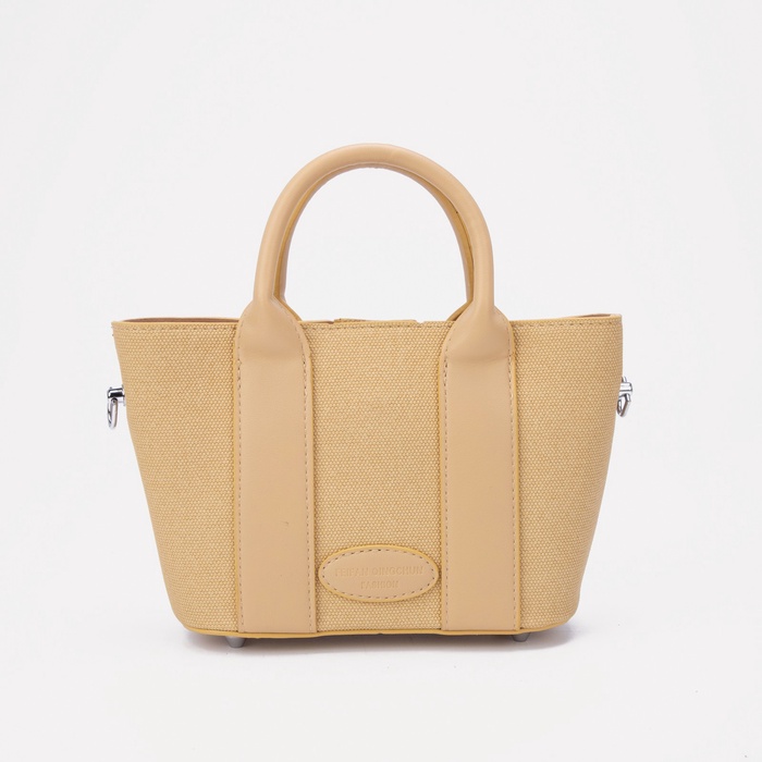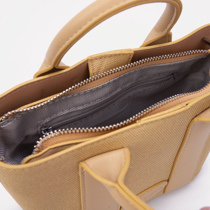 Сумка женская тоут на молнии, 25×7×14 см, однотонная, бежевая — Характеристики