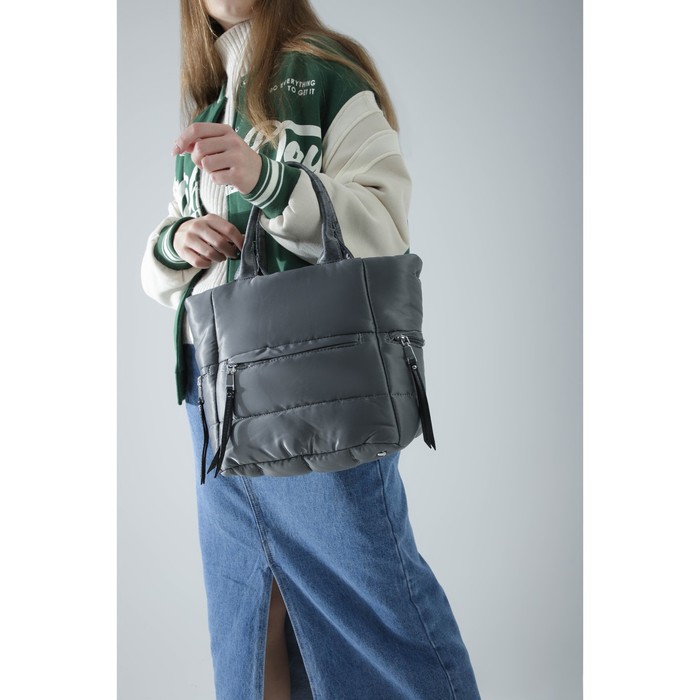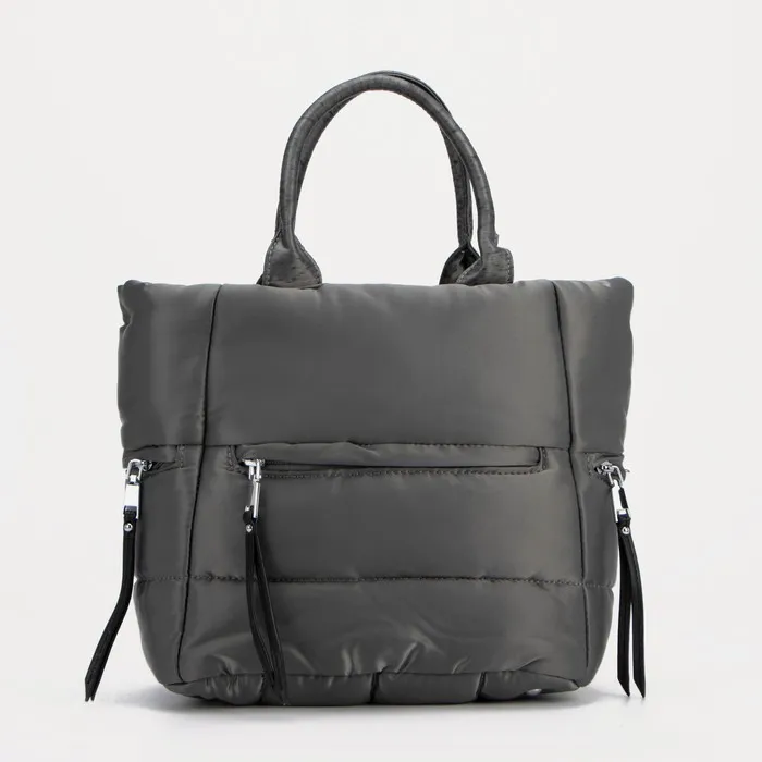 Сумка женская тоут на молнии, 27×16×23 см, однотонная, серая — Характеристики