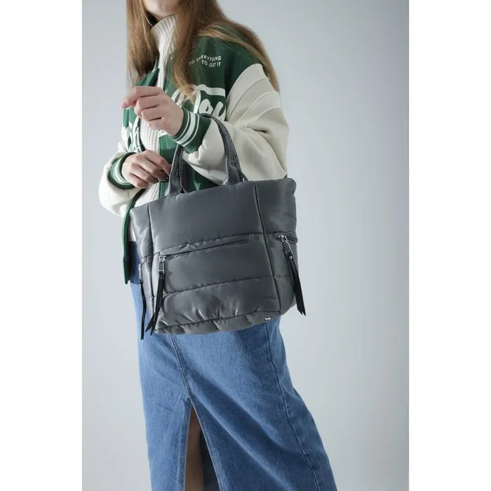 Эта серая сумка-тоут создана для повседневной городской жизни. Её универсальный оттенок и лаконичный дизайн сочетаются с разными стилями одежды. Мягкая форма удобно вмещает все необходимое, а регулируемый ремень позволяет носить её на плече или в руке.