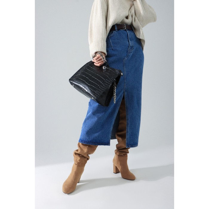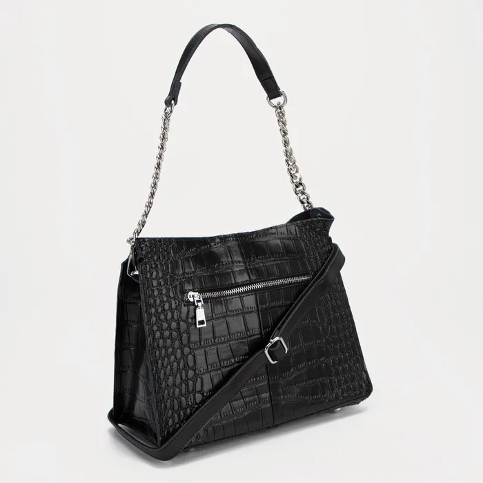 Сумка женская тоут на молнии, 30×12×24 см, однотонная, чёрная — Характеристики