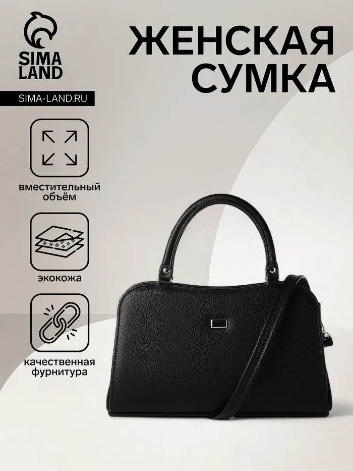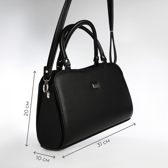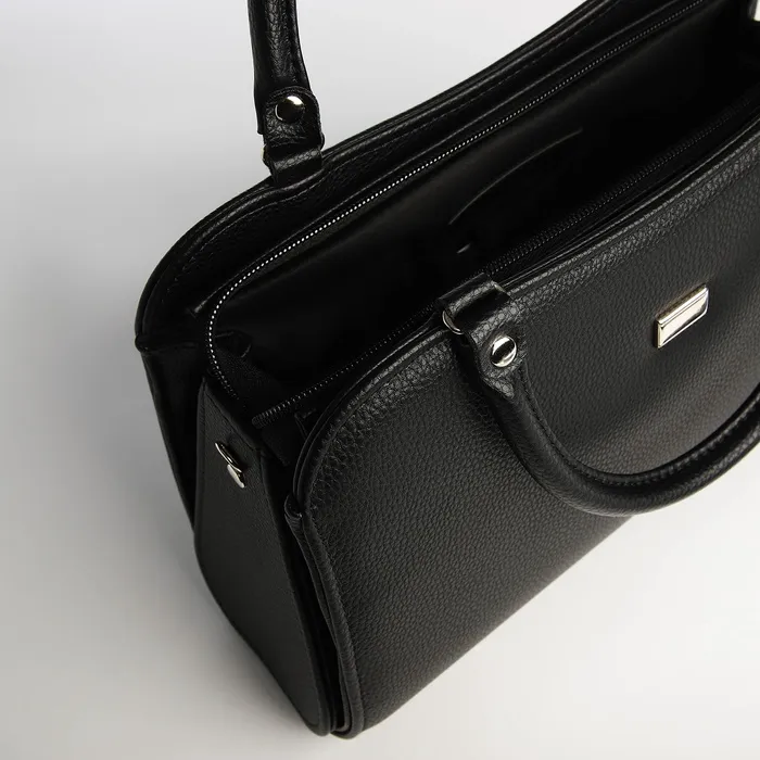 Сумка женская тоут на молнии, 31×10×20 см, однотонная, чёрная — Характеристики