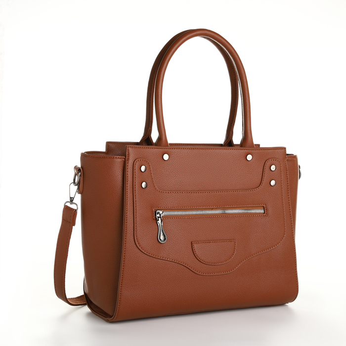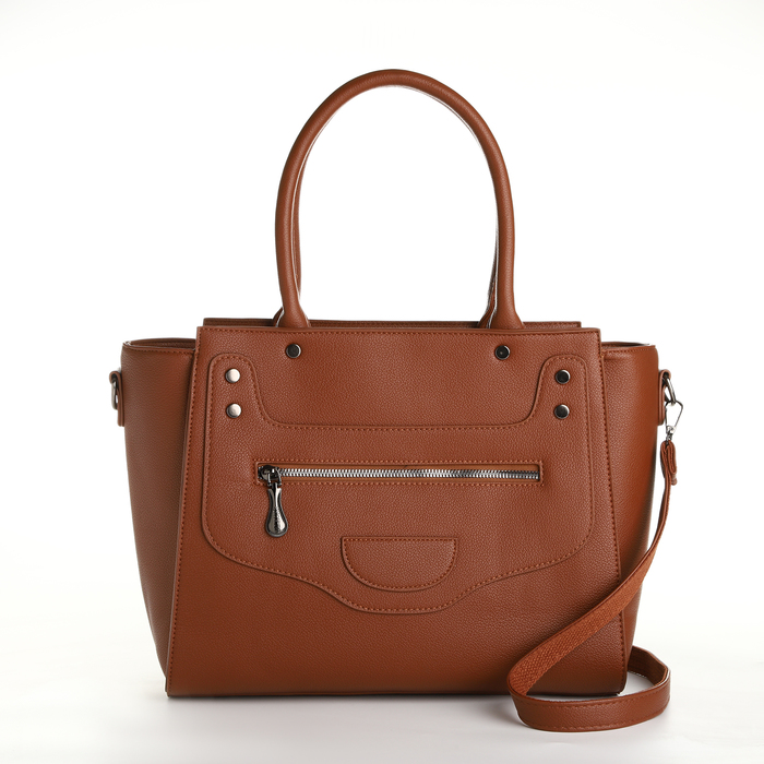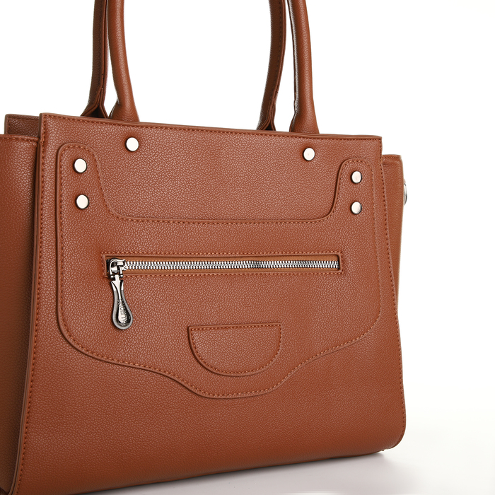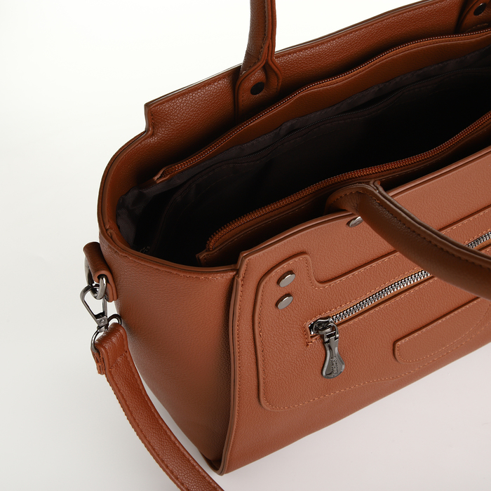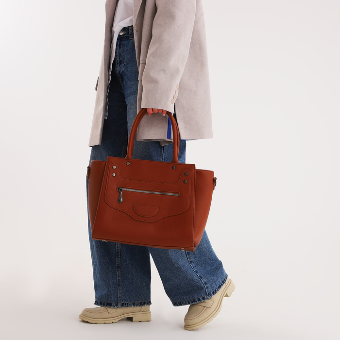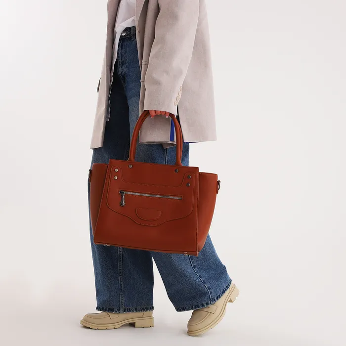 Сумка женская тоут на молнии, 32×14×25 см, однотонная, рыжая — Характеристики