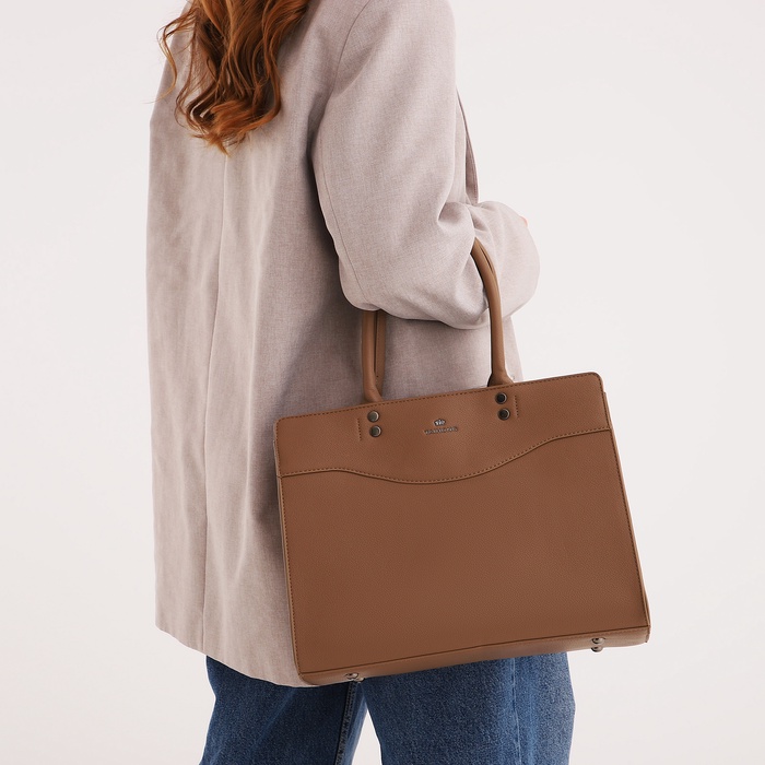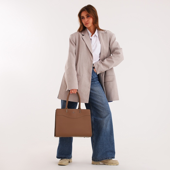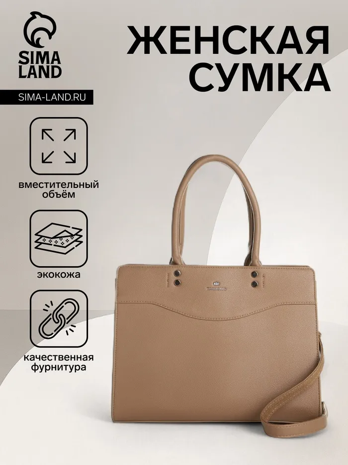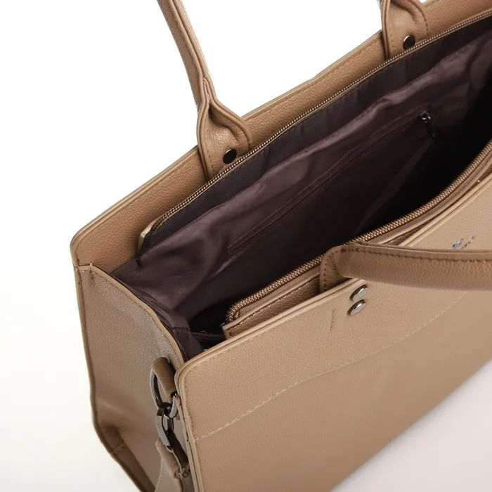 Сумка женская тоут на молнии, 33×12×25 см, однотонная, бежевая — Характеристики