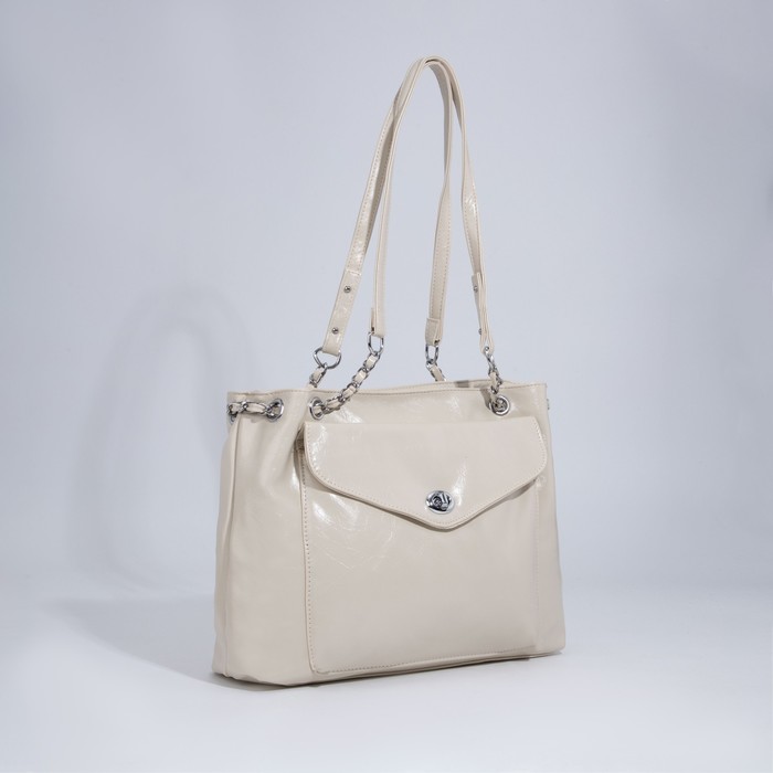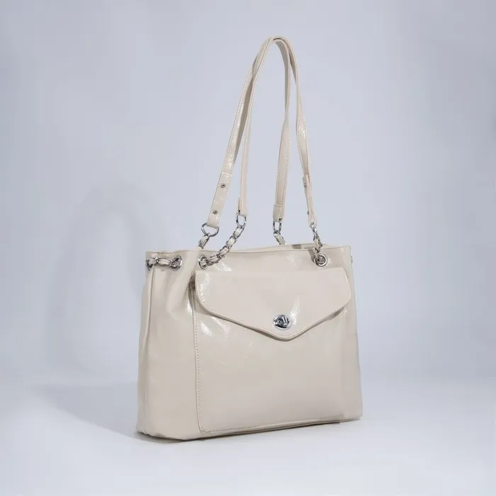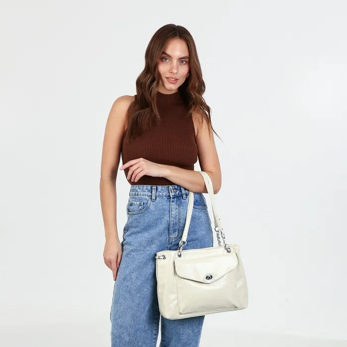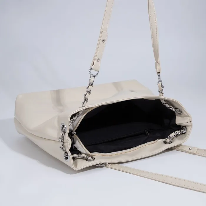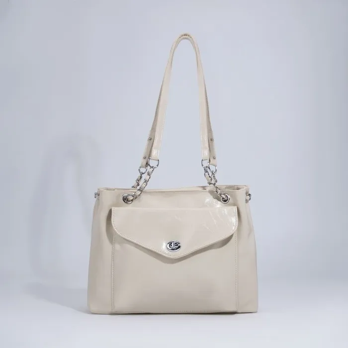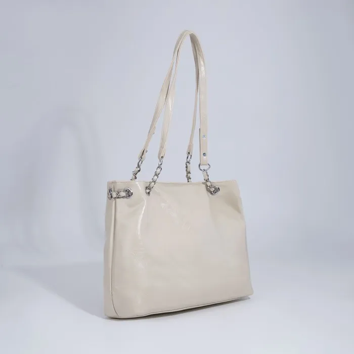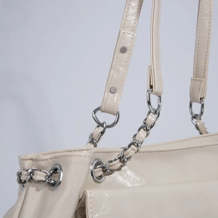 Эта белая сумка-тоут сочетает в себе элегантность и практичность. Её лаконичный дизайн с декоративной цепью добавляет образу утонченности, а удобный размер подходит для повседневного использования. Мягкая конструкция из искусственной кожи обеспечивает комфортное ношение в руке.