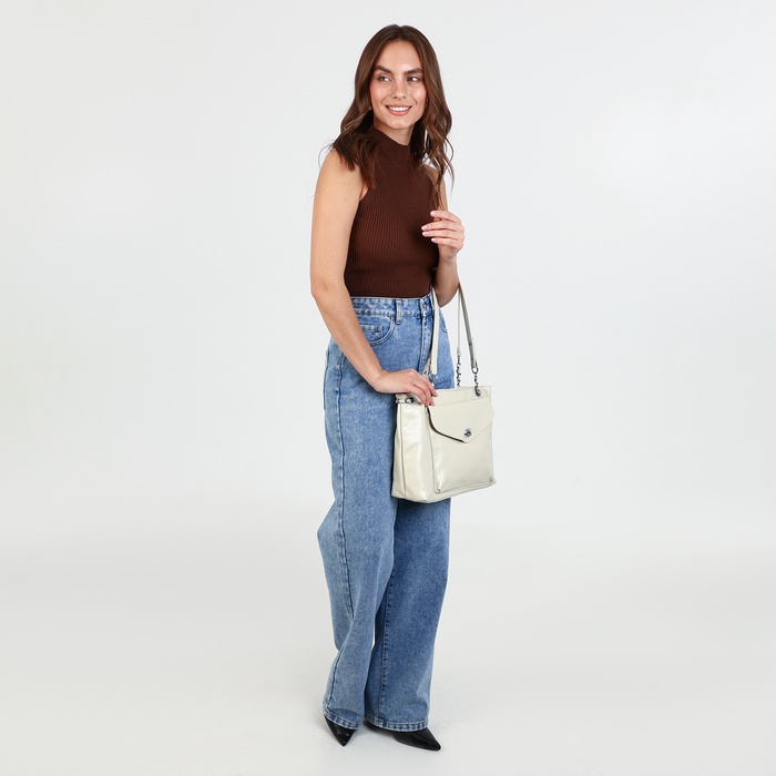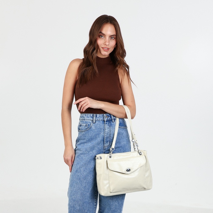 Сумка женская тоут на молнии, 33×8×25 см, однотонная, белая — Характеристики