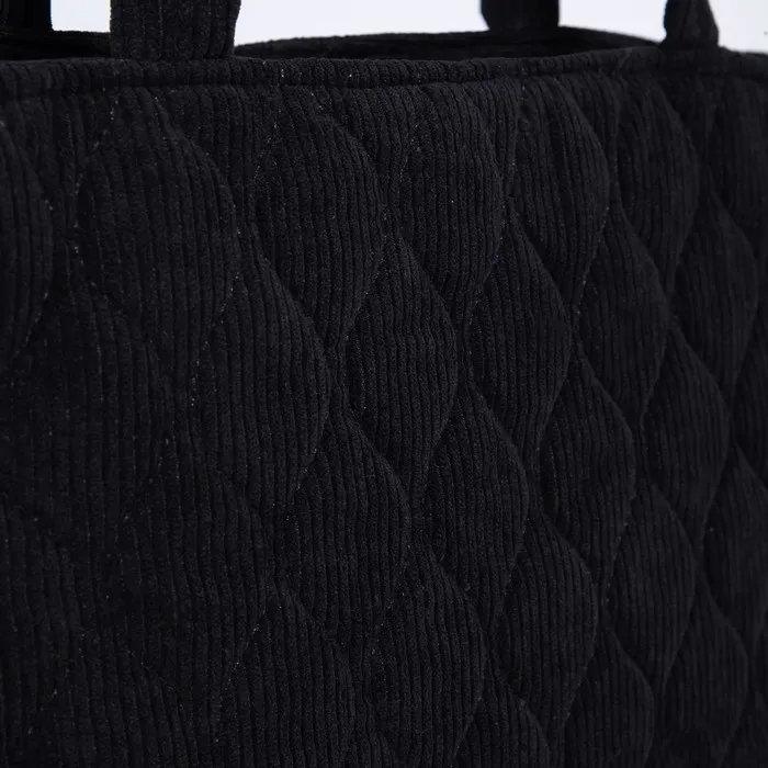 Женская сумка-тоут из текстиля — повседневный аксессуар, который сочетает простоту и функциональность. Чёрный цвет и золотая фурнитура создают лаконичный контраст, подходящий под разные образы — от джинсов до лёгких пальто. Мягкая форма и застёжка-молния обеспечивают баланс между свободой и порядком внутри.