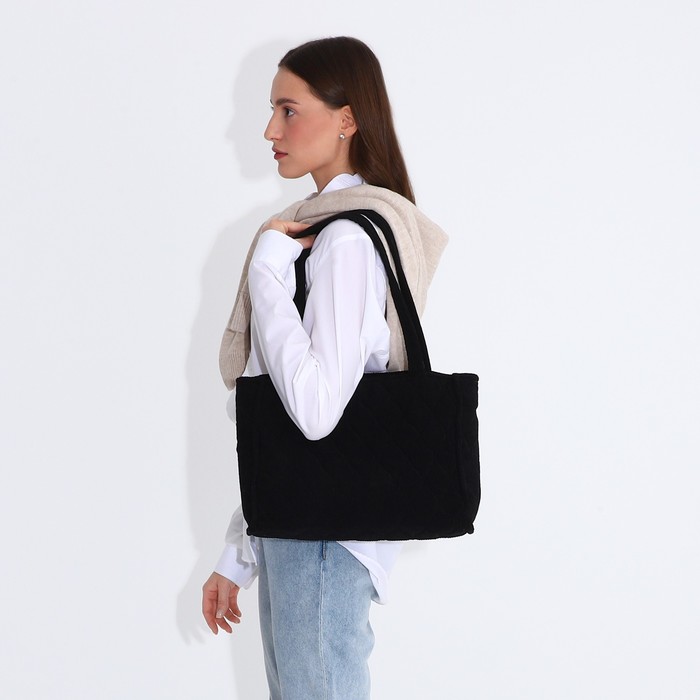 Сумка женская тоут на молнии, 35×11×26 см, со стёжкой, чёрная — Характеристики