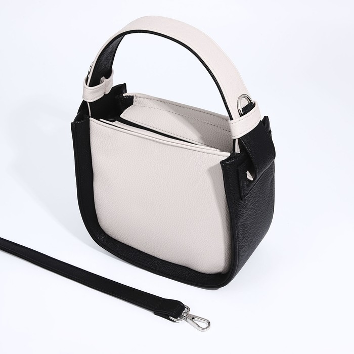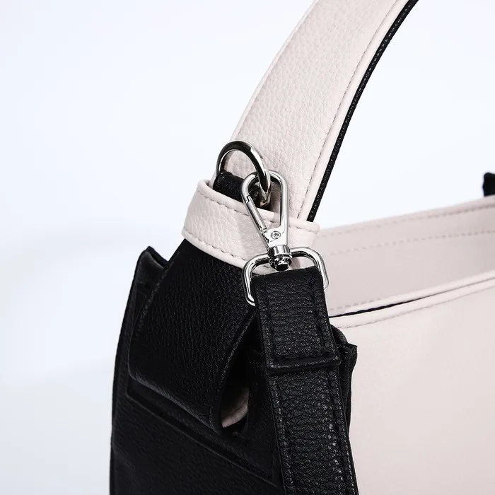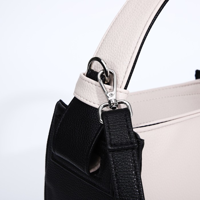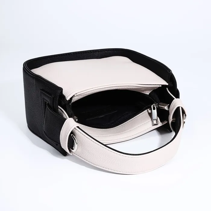 Сумка женская тоут TEXTURA на молнии, 19×8×18 см, однотонная, бежевая/чёрная — Характеристики