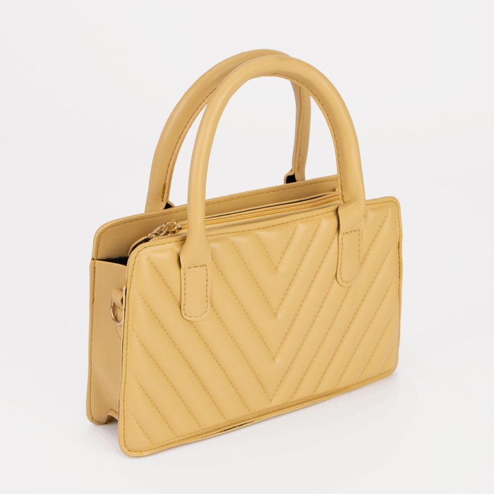 Сумка женская тоут TEXTURA на молнии, 20×4×14 см, однотонная, со стёжкой, жёлтая — Характеристики