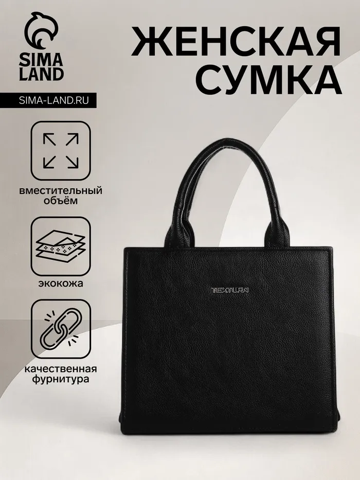 Сумка женская тоут TEXTURA на молнии, 22×11×22 см, чёрная — Характеристики