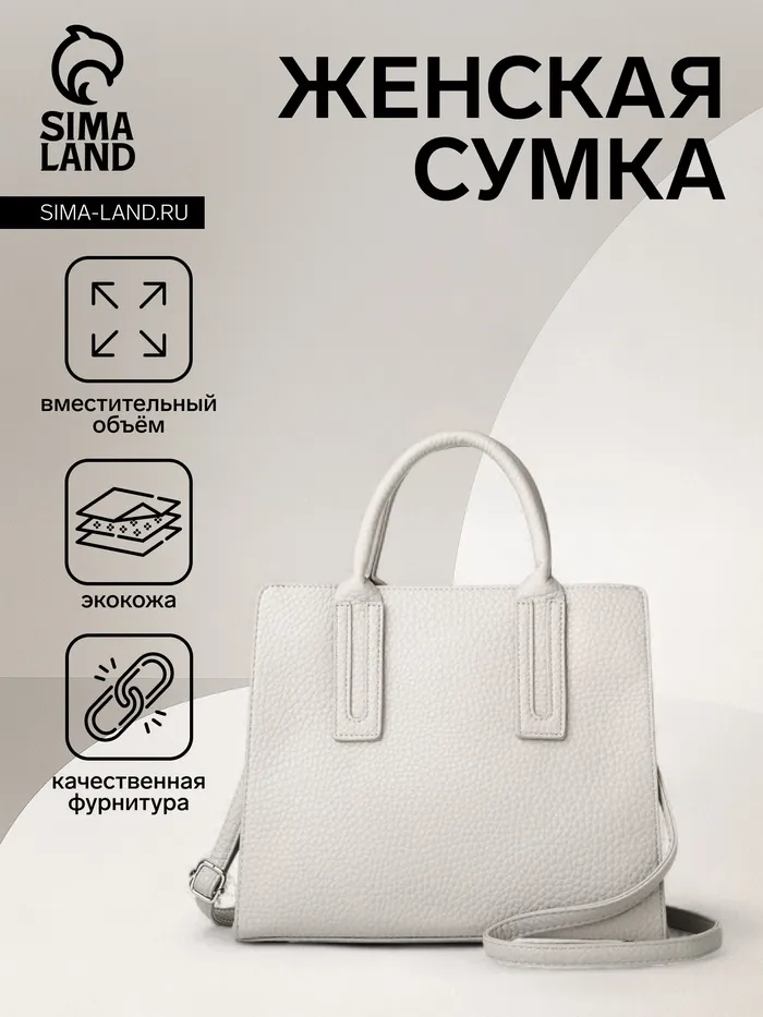 Сумка женская тоут TEXTURA на молнии, 29×10×25 см, однотонная, серая — Характеристики