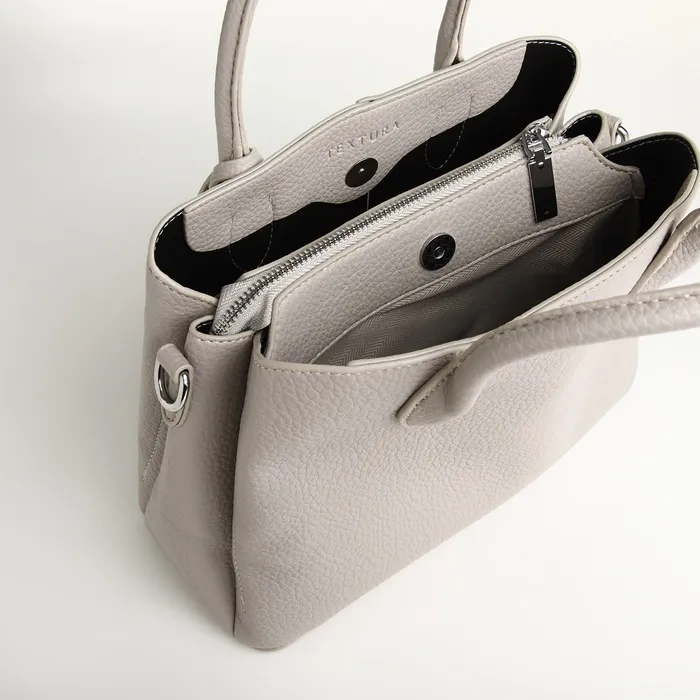 Сумка женская тоут TEXTURA на молнии, 29×11×23 см, однотонная, светло-серая — Характеристики