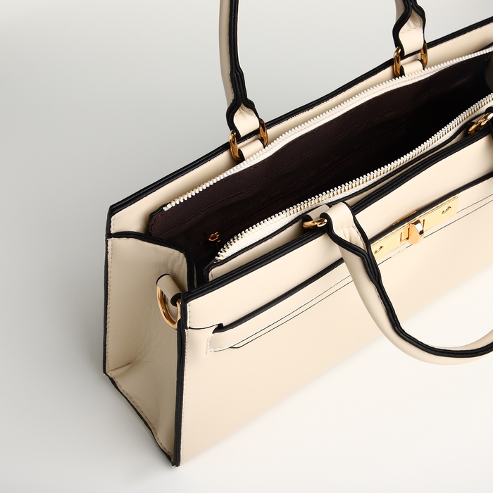 Сумка женская тоут TEXTURA на молнии, 34×8×18 см, однотонная, молочная — Характеристики