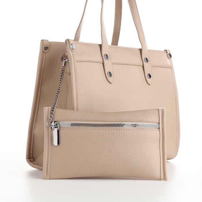 Сумка женская тоут TEXTURA на молнии, с кошельком, 30×10×24 см, бежевый — Характеристики