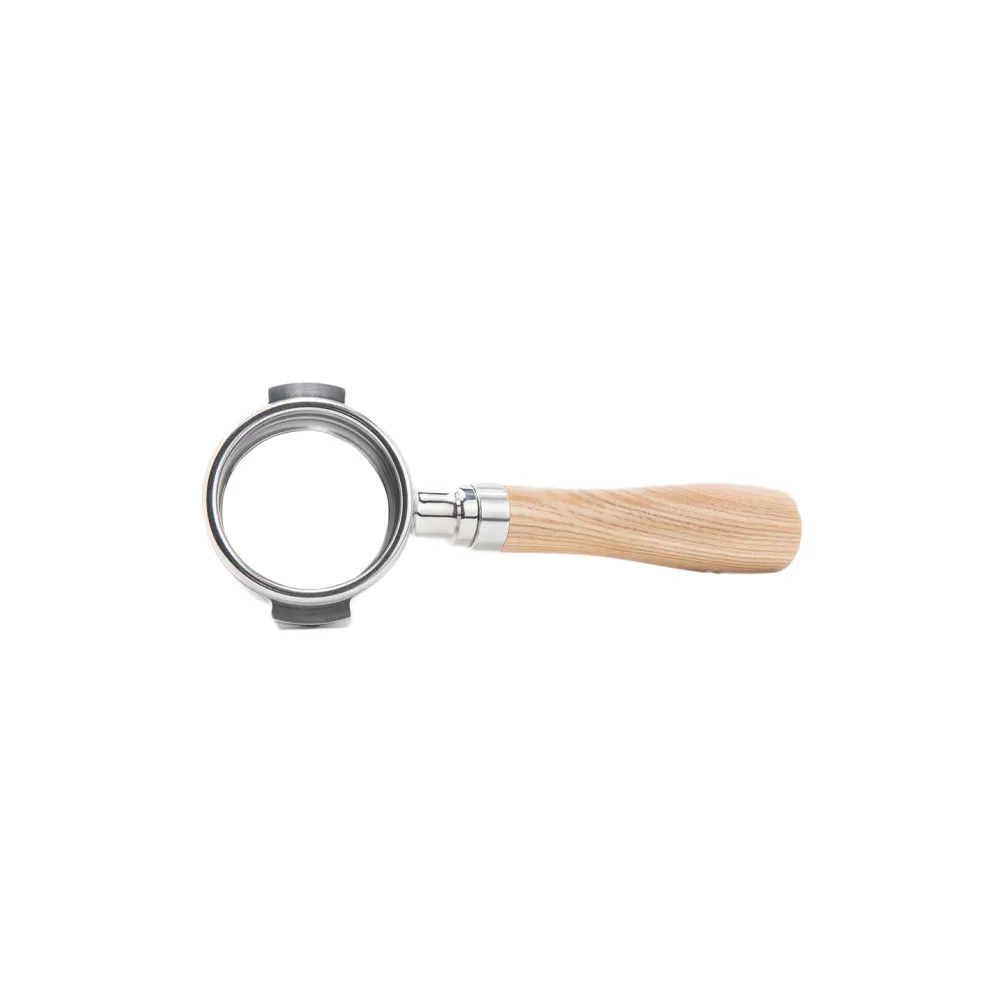 Рукоятка фильтра стандартного размера 58 мм от бренда 'Flair' изготовлена из нержавеющей стали и оснащена светлой деревянной ручкой. Рукоятка расположена под углом, обеспечивающим лучшую эргономику при приготовлении нескольких порций эспрессо подряд с помощью кофеварки 'Flair 58' или '58x'.