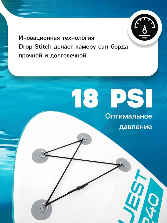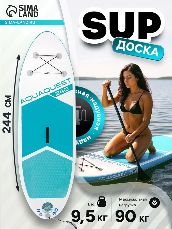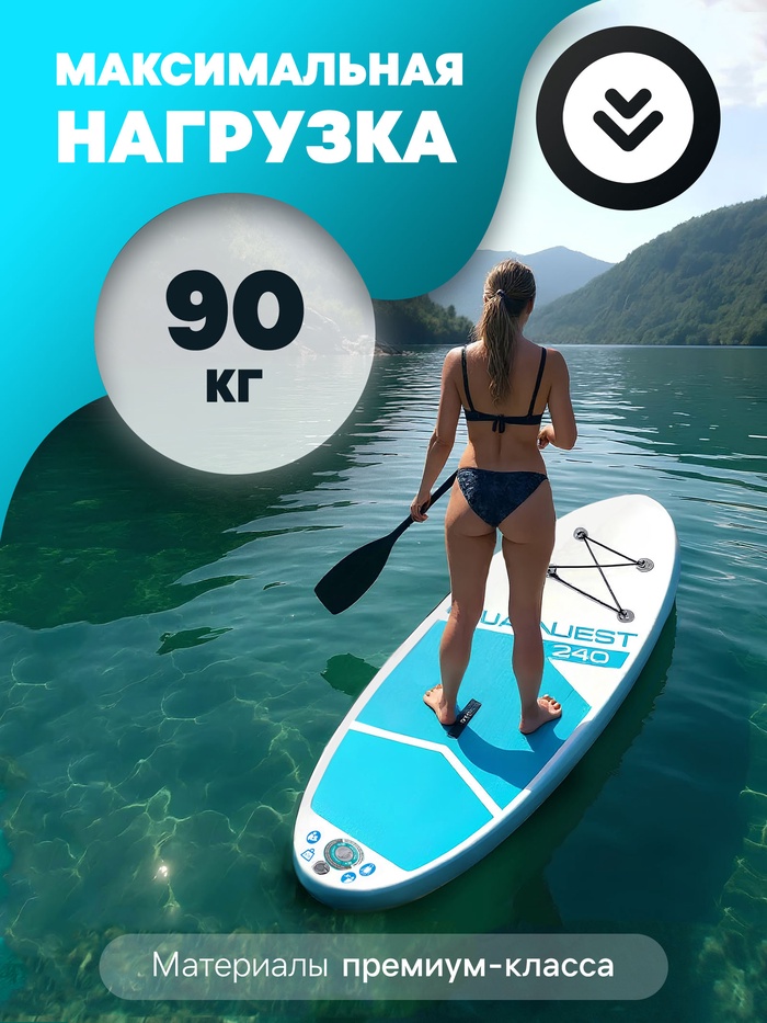 SUP-доска AQUA QUEST создана для начинающих и опытных пловцов. Она подходит для длительных водных прогулок и морского каякинга.