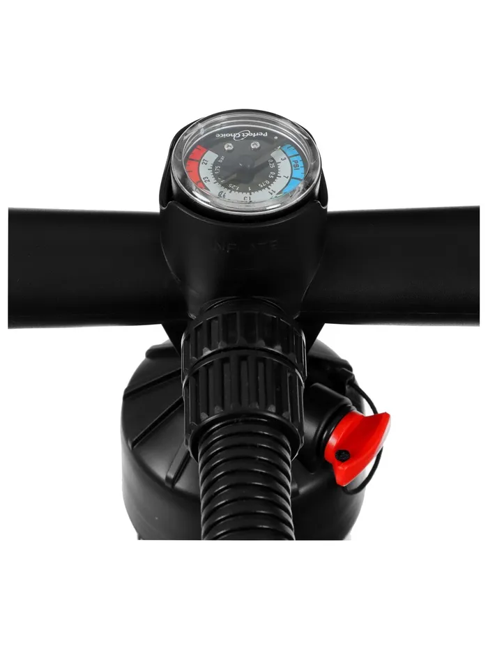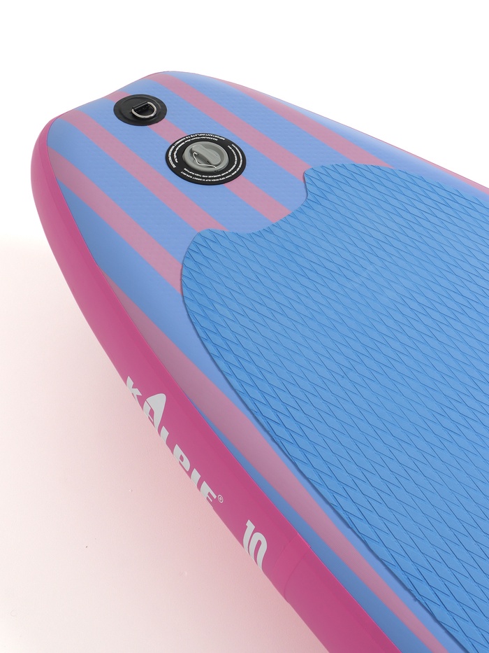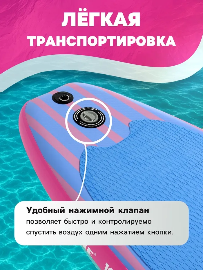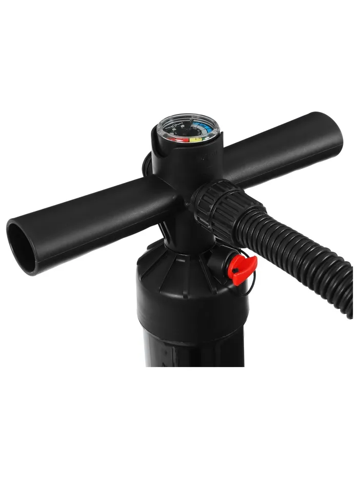 - Запирающийся нажимной клапан с защитой от повреждений обеспечивает герметичность. Кнопочная система помогает без труда приспустить давление в доске нажатием на кнопку в клапане.