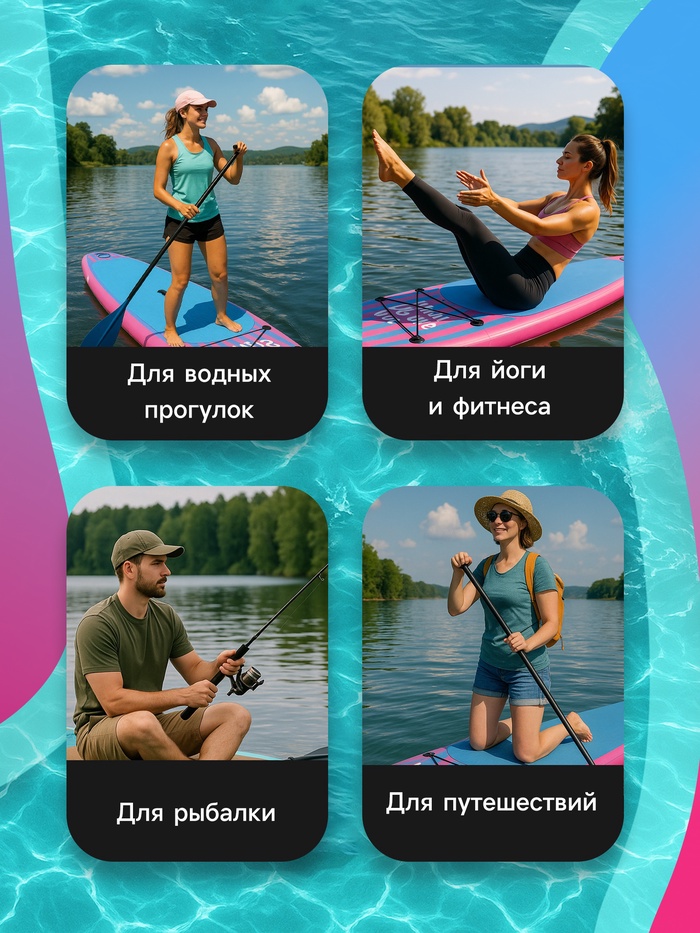 - Эластичная шнуровка в передней части — для закрепления и перевозки багажа на сапборде.