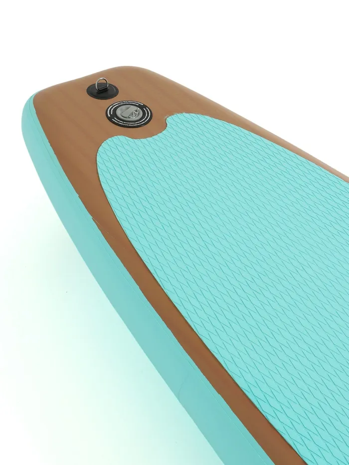 - Запирающийся нажимной клапан с защитой от повреждений обеспечивает герметичность. Кнопочная система помогает без труда приспустить давление в доске, нажав на кнопку в клапане.