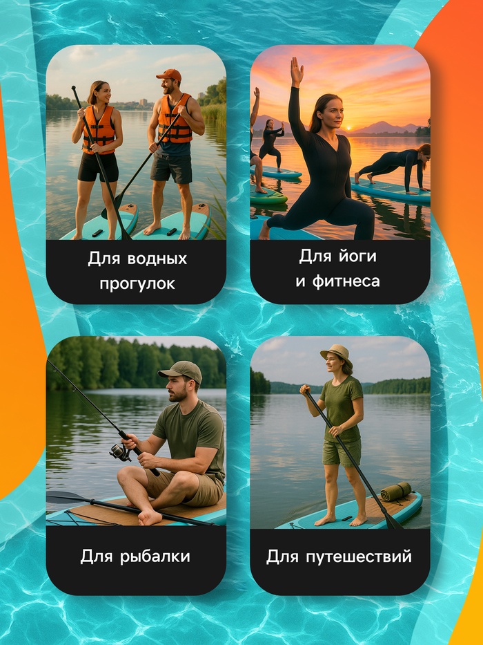 Подходит для занятий сап-йогой. Ширины доски достаточно, чтобы балансировать на воде в статичном положении тела.