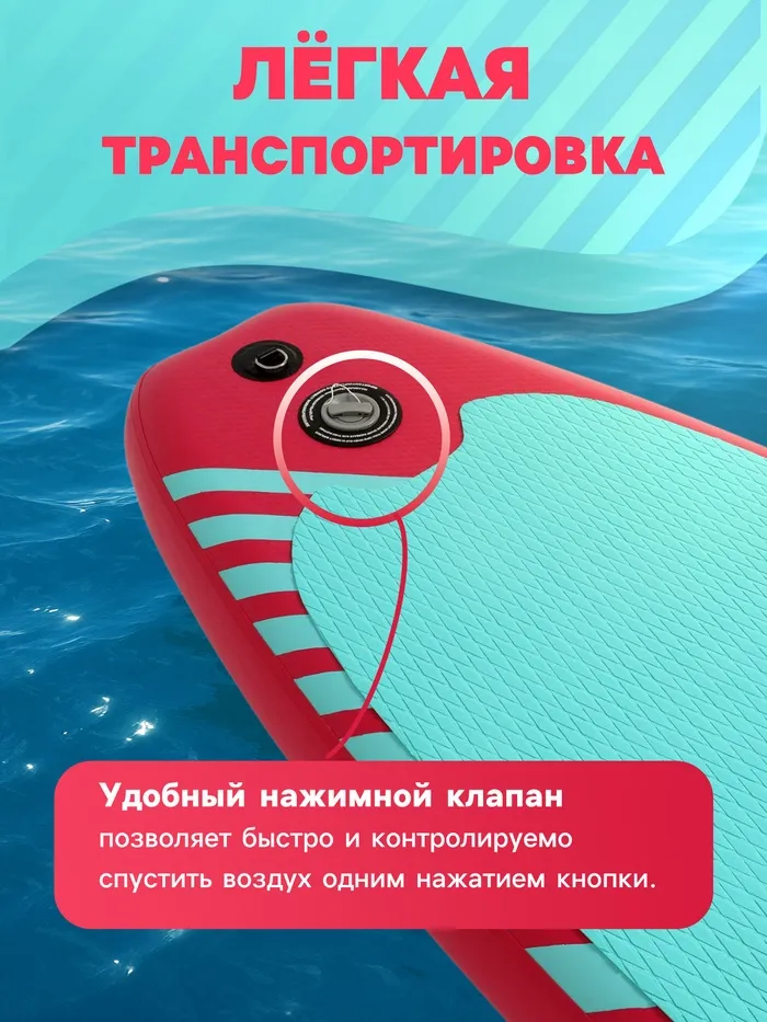 - Запирающийся нажимной клапан с защитой от повреждений обеспечивает лучшую герметичность. Кнопочная система помогает без труда приспустить давление в доске нажав на кнопку в клапане.