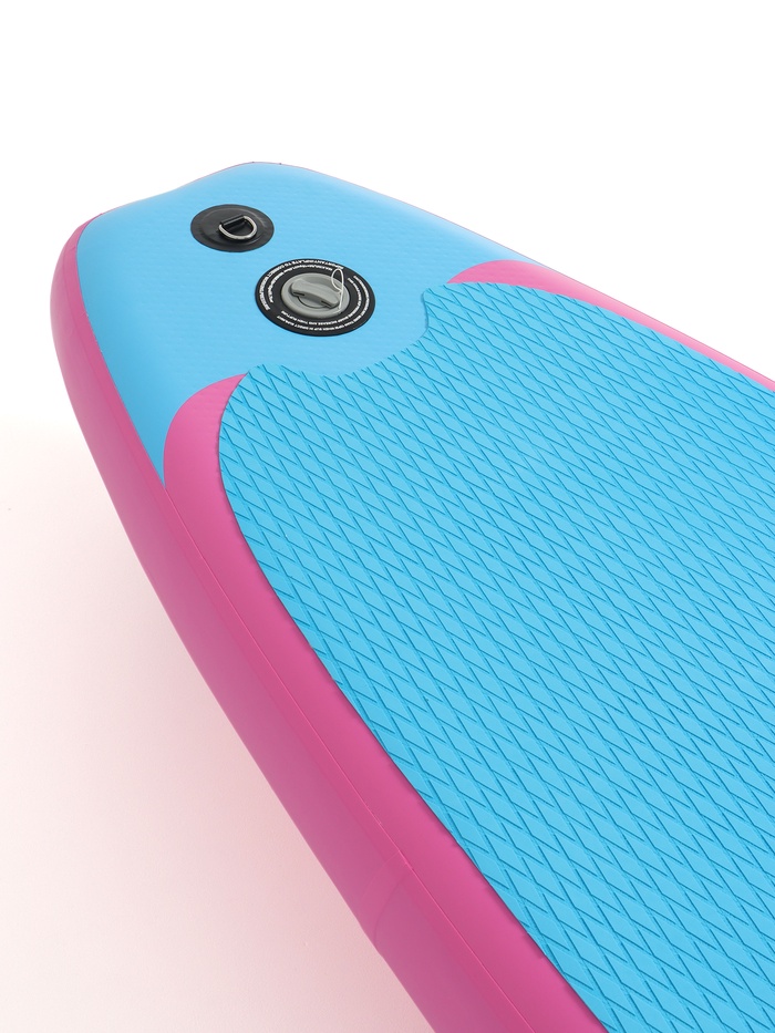 - Запирающийся нажимной клапан с защитой от повреждений обеспечивает лучшую герметичность. Кнопочная система помогает без труда приспустить давление в доске нажав на кнопку в клапане.