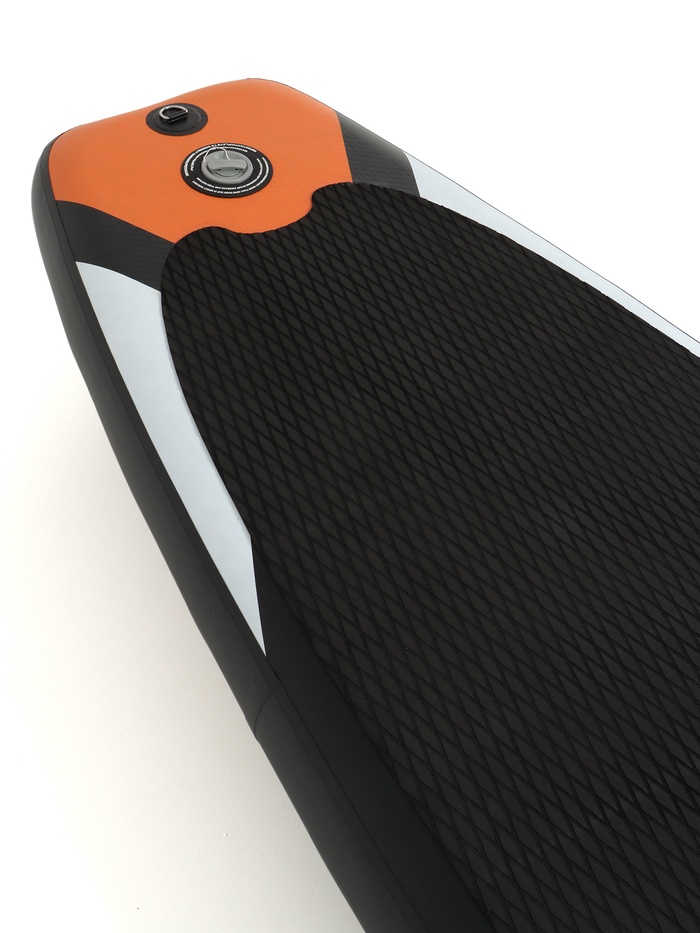 - Запирающийся нажимной клапан с защитой от повреждений обеспечивает герметичность. Кнопочная система помогает без труда приспустить давление в доске нажатием на кнопку в клапане.