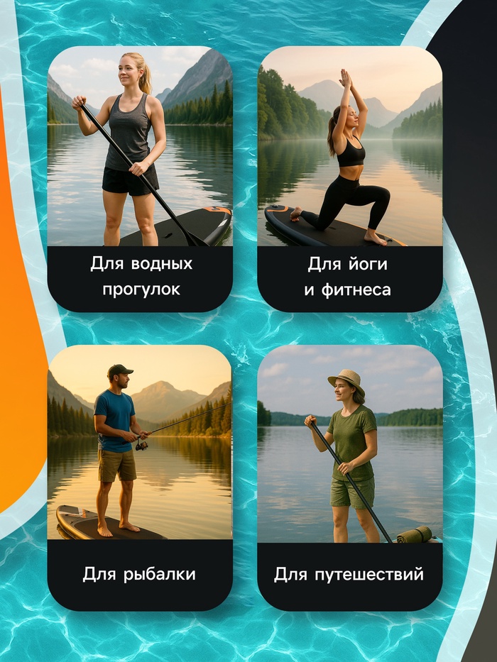 - Эластичная шнуровка в передней части — для закрепления и перевозки багажа на сапборде.
