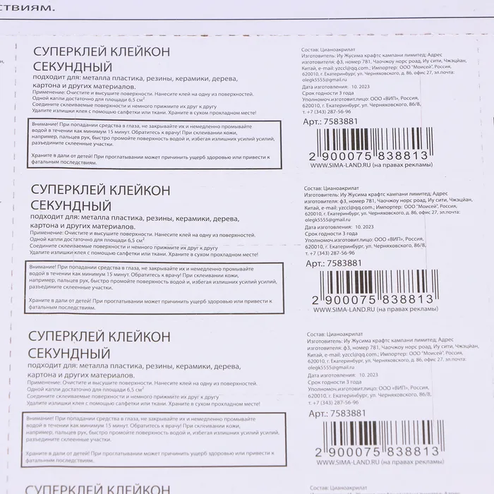 Суперклей «Клейкон», секундный, 1 г, набор 12 шт. — Характеристики