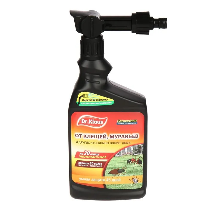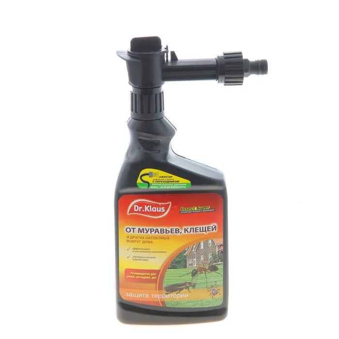 Для уничтожения муравьев, клещей, блох, тараканов и других насекомых и их личинок вокруг дачи, коттеджа, на террасах, верандах, стенах, фундаменте, дорожках, дворовой территории: легкая и удобная защита от проникновения насекомых в дом.