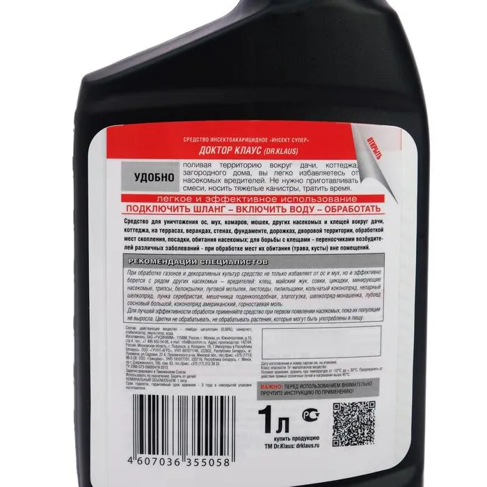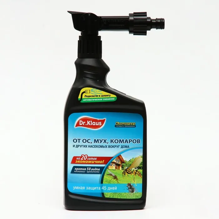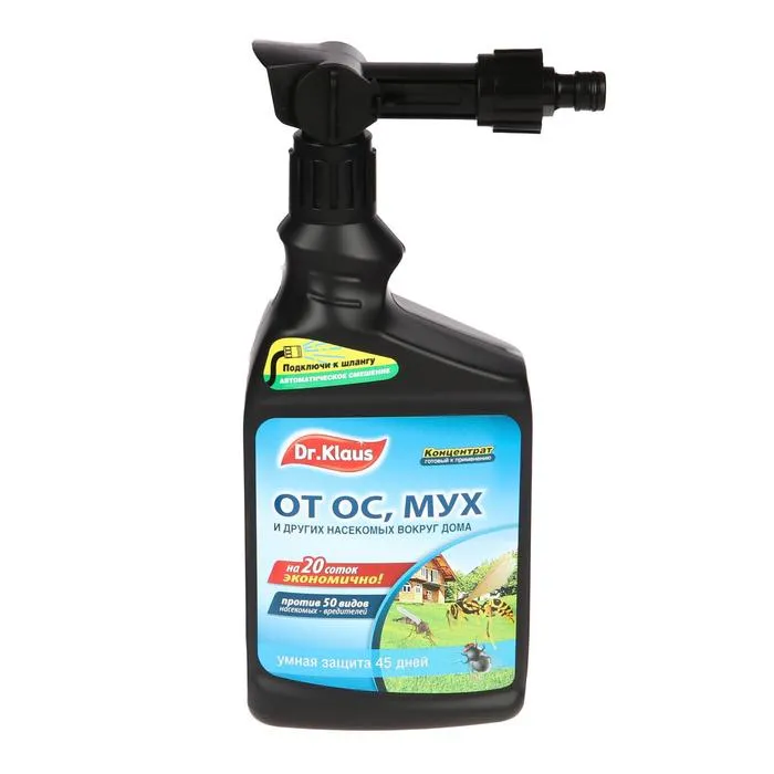 Для уничтожения ос, мух, комаров, мошек, клещей и других насекомых и их личинок вокруг дачи, коттеджа, на террасах, верандах, стенах, фундаменте, дорожках, дворовой территории: легкая и удобная защита от проникновения насекомых в дом.
