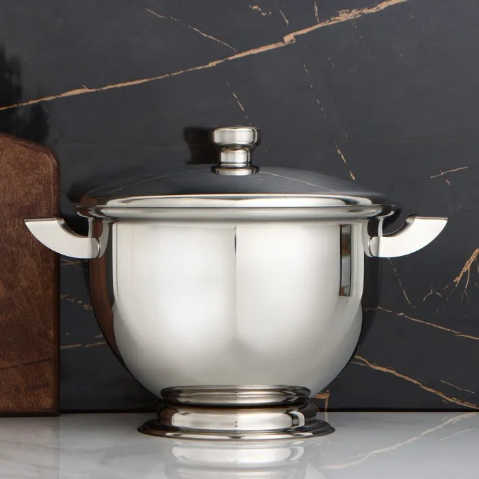 Супница из нержавеющей стали станет элегантным дополнением сервировки стола. Предмет можно использовать для хранения, разогрева и подачи жидких блюд.