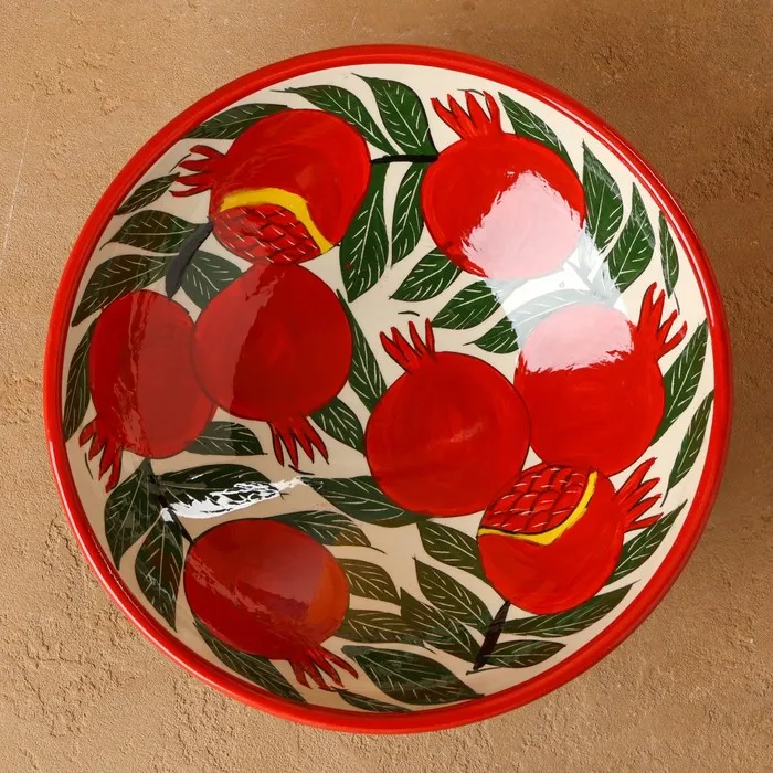 Супница Риштанская Керамика «Гранаты», 1 л, d=25 см, керамика, белая, красная — Характеристики