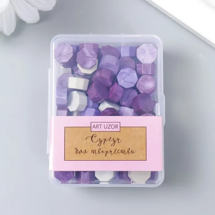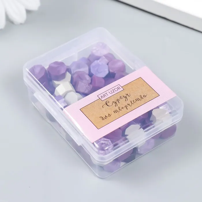 Сургуч в гранулах в коробочке «Восьмигранник», палитра фиолет, 30 г, 2.4×5.5×7 см — Характеристики