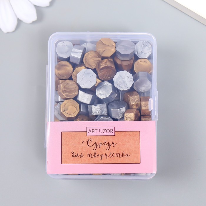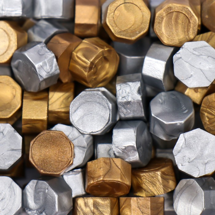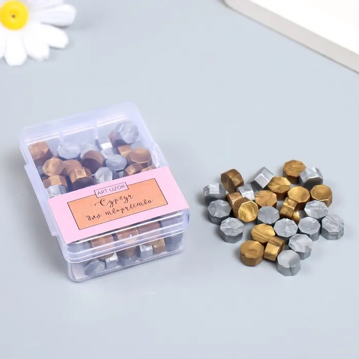 Сургуч в гранулах в коробочке «Восьмигранник», золото и серебро, 35 г, 2.4×5.5×7 см — Характеристики