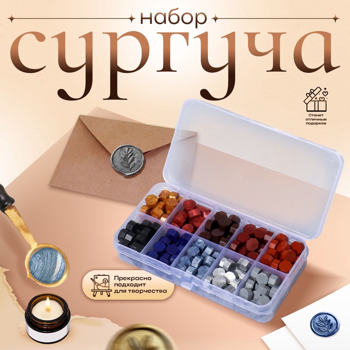 Набор сургуча «Холодные оттенки», матовый, перламутр, 10 цветов, 12.7×6.5×2 см