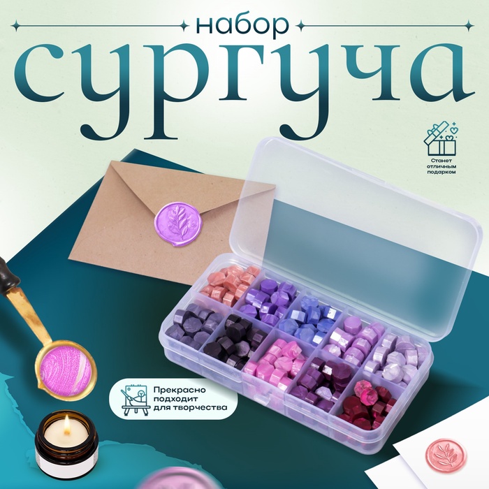 Набор сургуча «Оттенки фиолетового», перламутр, 10 цветов, 12.7×6.5×2 см