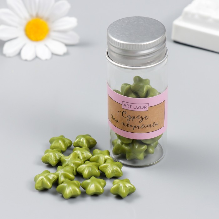 Сургуч в гранулах в баночке «Звёздочки», светло-оливковый перламутр, 16 г, 7×3×3 см