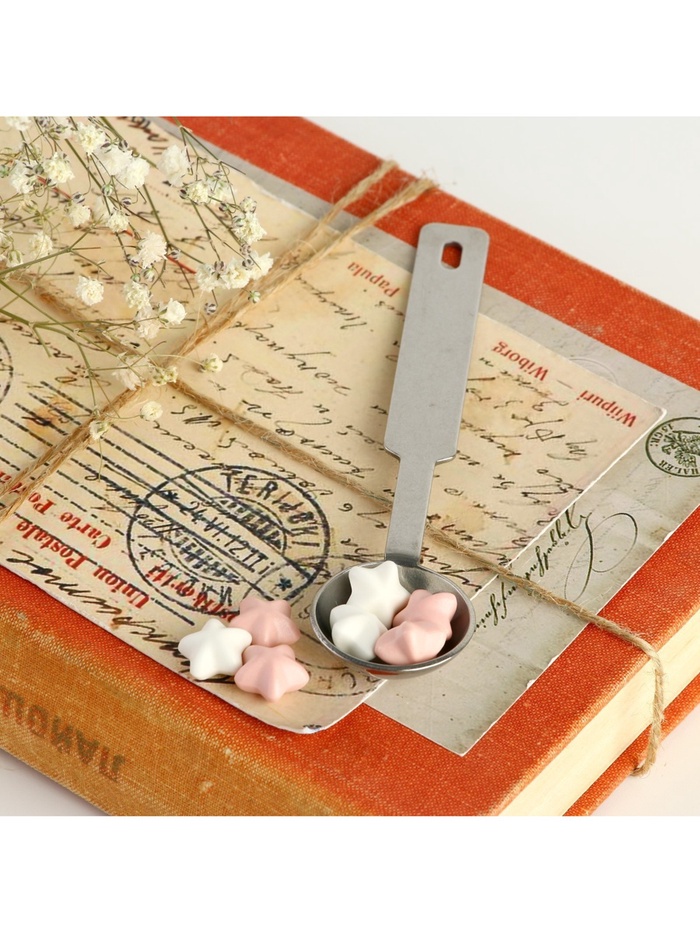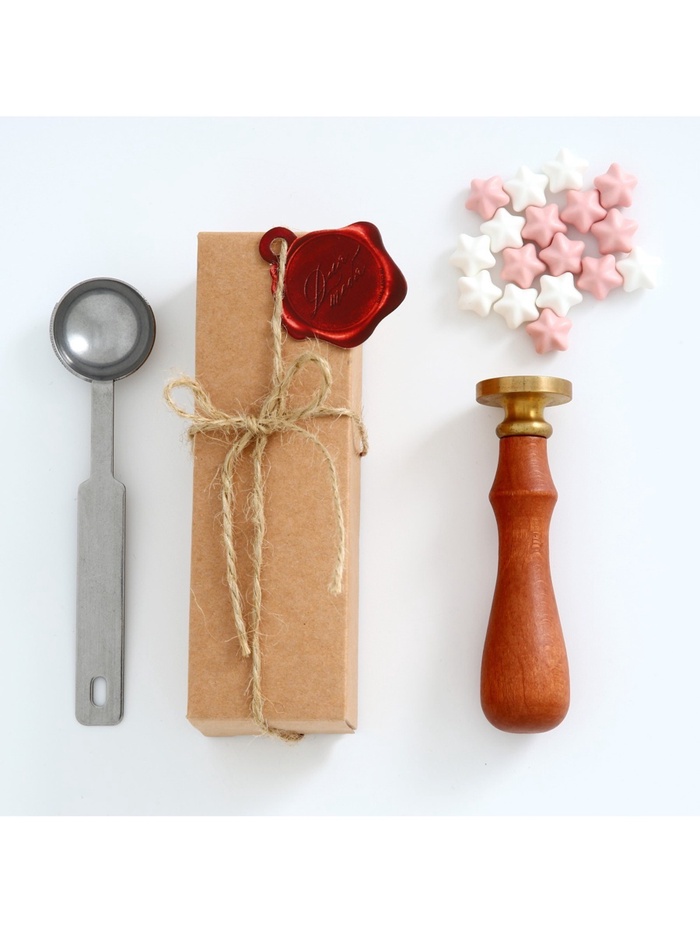 Состав набора: Ложка для плавления сургуча Сургуч в гранулах Штамп с деревянной ручкой
