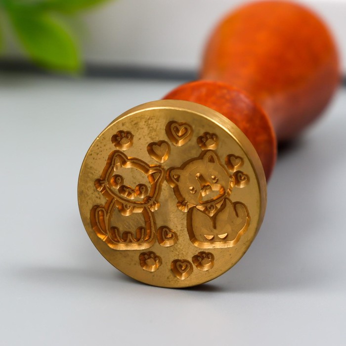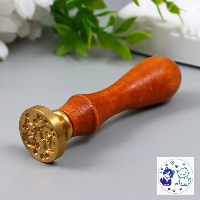 Сургучная печать с деревянной ручкой «Котята с сердечками», 9×2.5×2.5 см — Характеристики