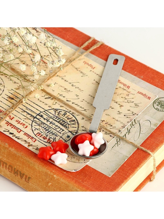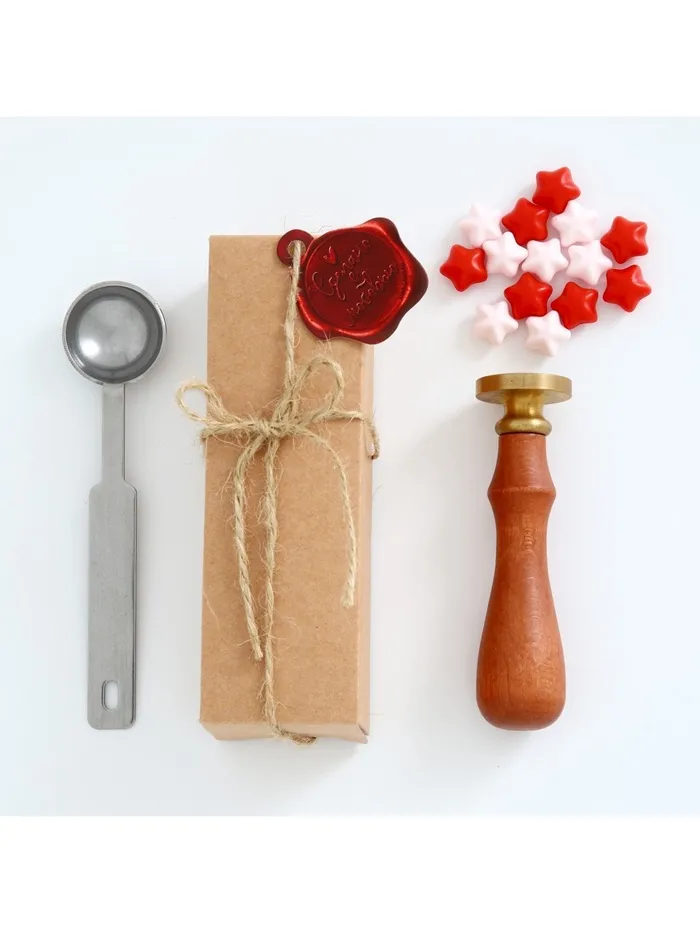 Состав набора: Ложка для плавления сургуча Сургуч в гранулах Штамп с деревянной ручкой