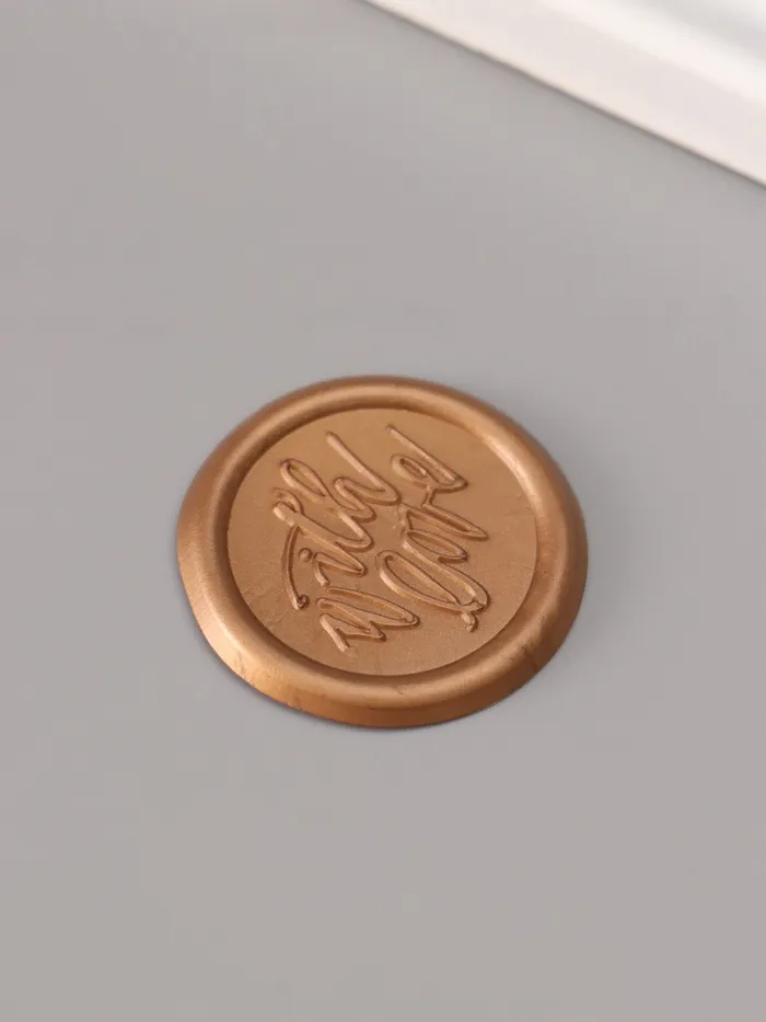 Добавьте особую теплоту и элегантность вашим приглашениям, конвертам или сертификатам с помощью декоративного элемента в виде сургучного оттиска. Изделие с надписью «С любовью», выполненной в благородном бронзовом цвете, станет идеальным выбором для тех, кто стремится подчеркнуть внимание к деталям и создать неповторимую атмосферу праздника или важного события.