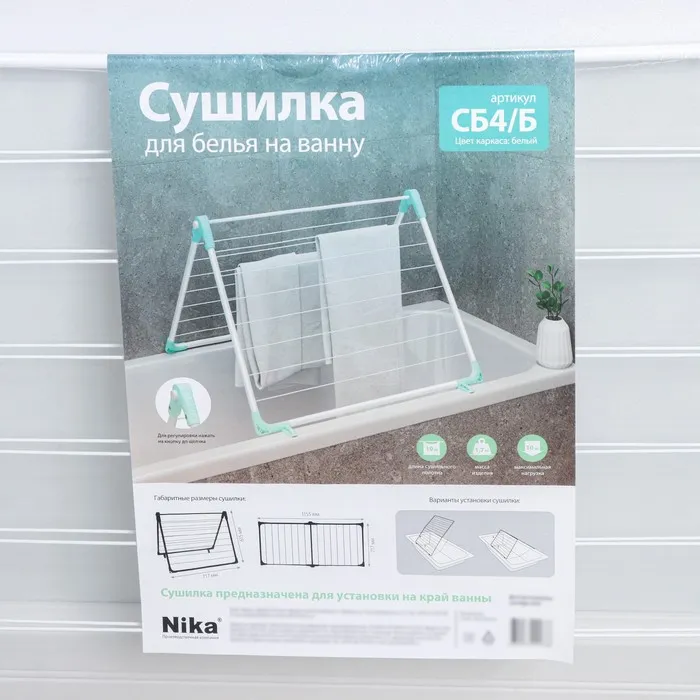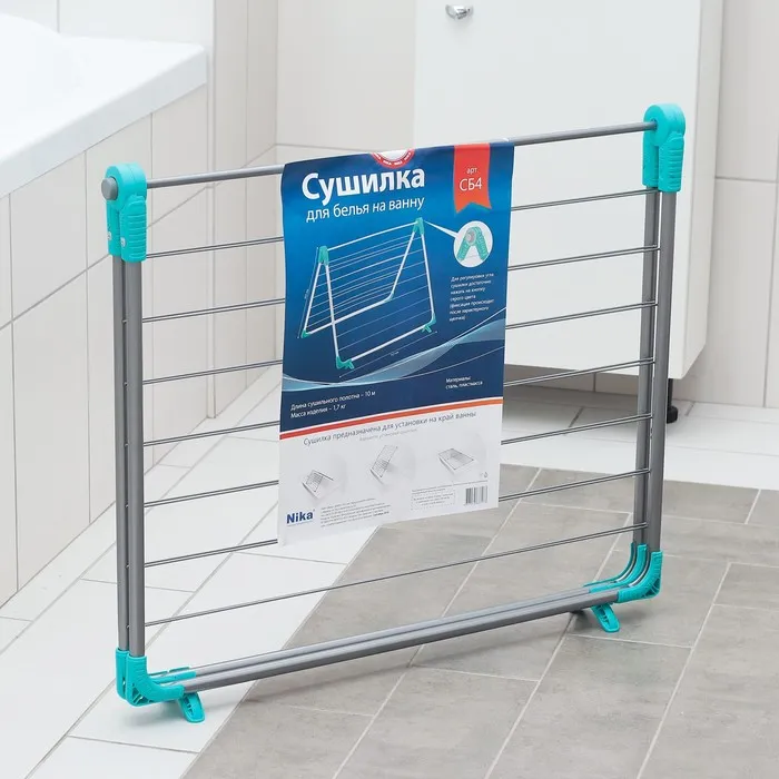 Сушилка для белья на ванну складная, рабочая длина 10 м, МИКС — Характеристики