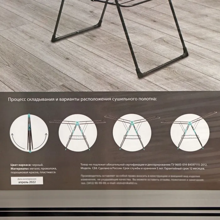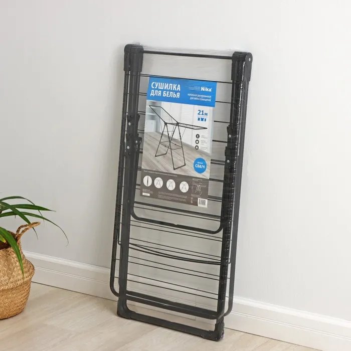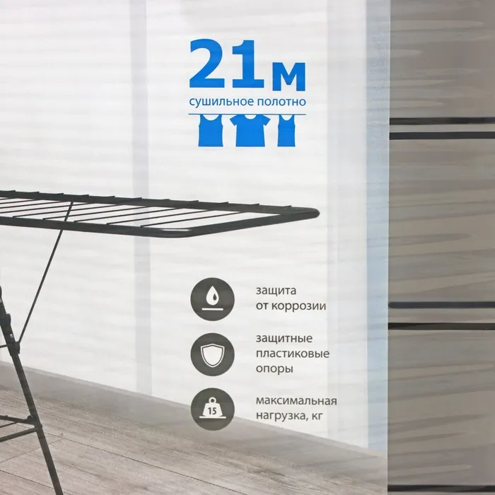 Сушилка для белья напольная двухуровневая, рабочая длина 21 м, чёрная — Характеристики