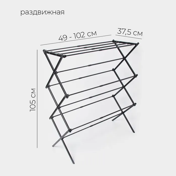 Сушилка для белья напольная LaDо́m, складная, раздвижная 49-102 см, металл, 49×102×37.5 см — Характеристики